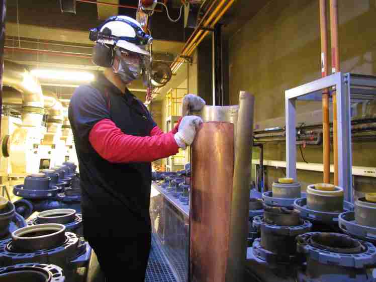 壹号平台将废弃物转化成有效的工业或民生原物料,,图为废铜液淬炼后再制成纯度极高的铜管