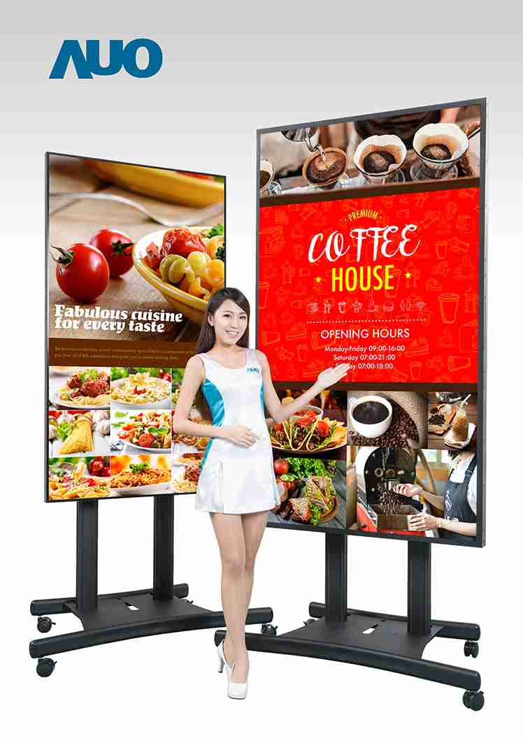 本次领先业界(*) 推出 85寸 UHD 4K 户外型超大显示器,,,,具备 2500 nits 超高亮度和连续开机操作的稳定性能,,,,在阳光直射环境下影像仍然鲜明清晰,,,适合户外候车亭及高级精品店等广告播放使用。。。。55寸 Full HD 拼接墙显示器的极窄边框技术,,,让相邻屏幕拼接后的边框宽度仅 1.8mm,,,能因应各种空间灵活设计为不规则拼接墙,,,,搭配色彩及亮度调校技术呈现完美的画面均匀度,,打造独一无二的品牌形象广告。。本次也将展出一系列的超宽型公共讯息显示器,,尺寸从 28.6寸至 42寸,,,皆具备高解析、、、、高亮度、、、高信赖性等特色,,,,可配置于半户外环境,,作为交通信息显示器提供旅客实时候车信息及广告讯息、、、于零售商店展示超宽型广告,,,或打造成智能商店货架以互动感应设计呈现商品讯息,,增加消费者购物乐趣。。。。
