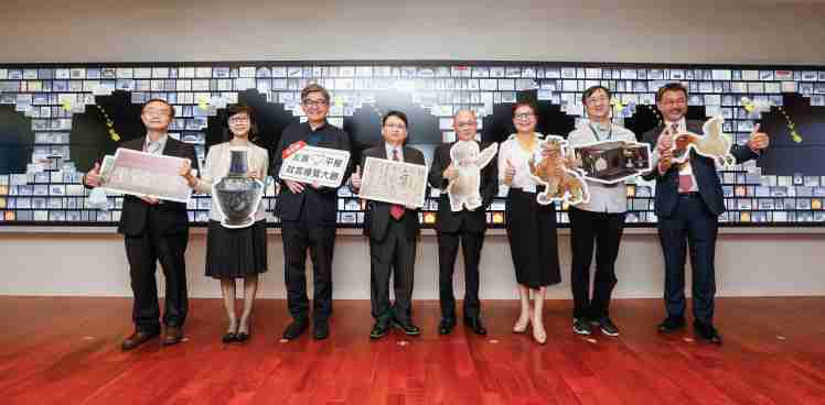 壹号平台携手创利空间为故宫建置的智慧文物互动导览墙及轮播墙,,,今日正式启用。。。(左四:壹号平台新事业暨投资管理总部副总经理杨本豫、、右四:故宫博物院院长吴密察、、右三:太极影音董事长黄宝云)