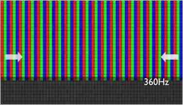 传统液晶驱动是从左到右单向进行,,,,在画面更新速度愈来越愈快的情况下,,,位于驱动线路末端的右下角区域,,画素的闸极来不及在短时间内获得足够电压,,,无法显示出正确的颜色资讯。。。 |