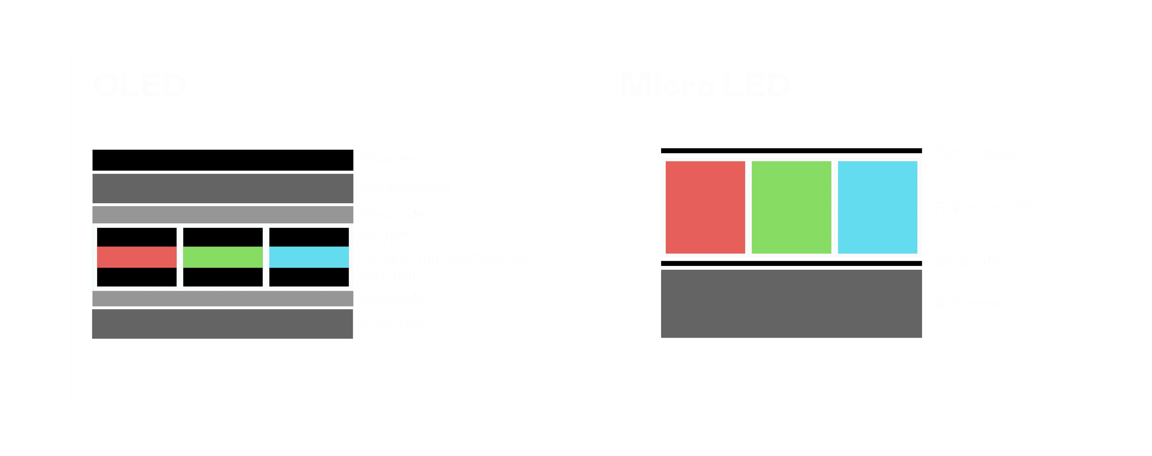以 LED 做为显示画素,,,可让 LED 的发光效率发挥到极致,,,从而让显示器具备优异的亮度表现,,不论是在户外或室内,,,,均具备出众的显示效果。。。同时,,与使用有机材料的 OLED 相比,,,,LED 具备更稳定、、、、寿命更长的特性,,,不仅不会有画面烙印问题,,,而且更不容易出现故障、、、、坏点。。